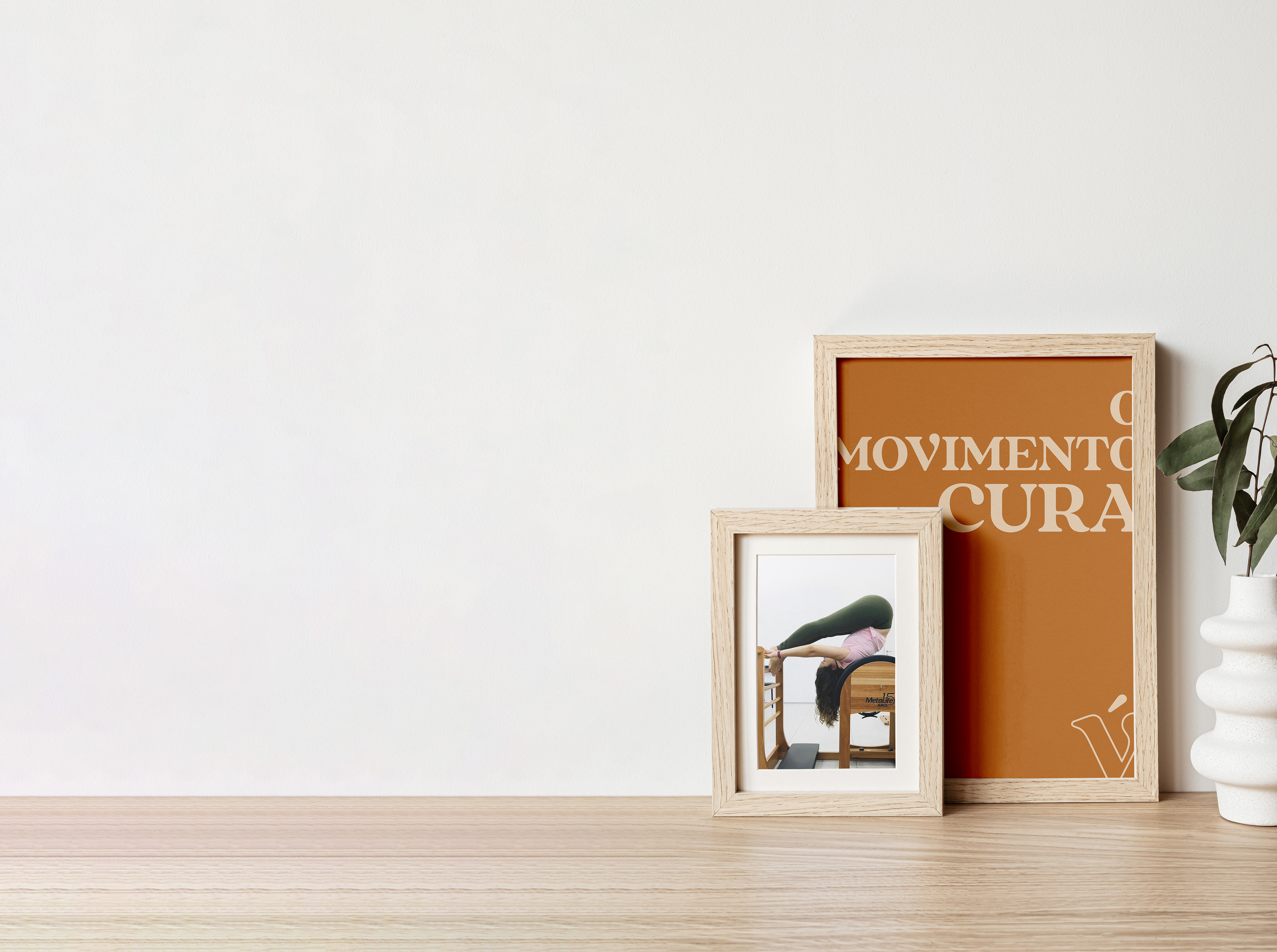 Some optical adjustments were made for the brand to fit the segment. The letter “L” was elongated up and down, surpassing some predetermined limits to convey the idea of stretching – extremely present in pilates. The letter “V” in outline abstractly indicates the “Hundred” pose in the pilates Reformer apparatus, which consists of lifting the trunk and legs simultaneously.