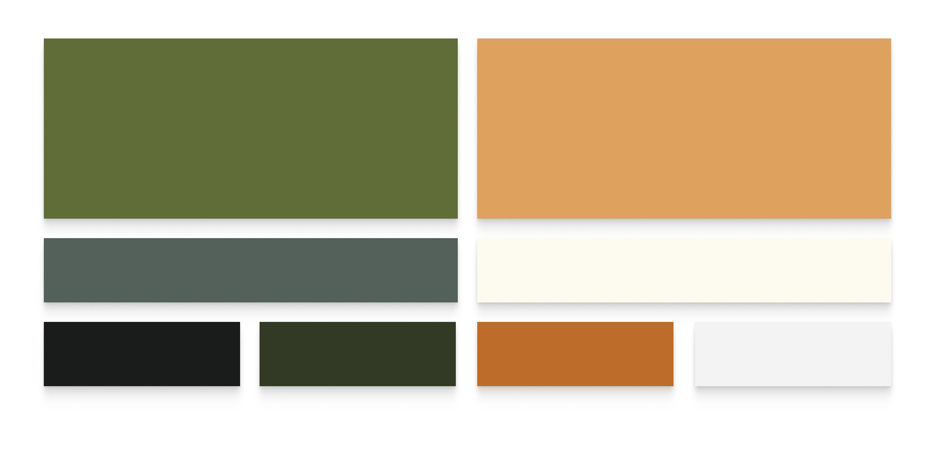 As secondary colors, a darker shade of green and a more caramel tone will complement future materials.
